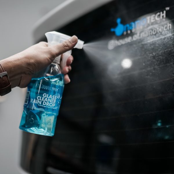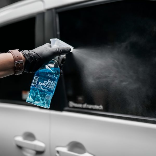 Formula Glass Cleaner Rain Drop menjernihkan dan memberikan efek hydrophobic (anti air) khusus untuk kaca